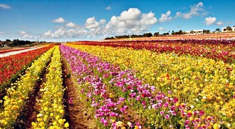 サンディエゴ郡カールスバッドの春の風物詩 The Flower Fields at Carlsbad Ranch が、2026年シーズン (3月1日〜5月10日) の入場券とシーズンパス (全期間入場券) の販売を開始した。期間中は約8,000万輪の花が丘陵地を覆い、55エーカーの巨大ラナンキュラス畑が色彩豊かに染まる見通しだ。