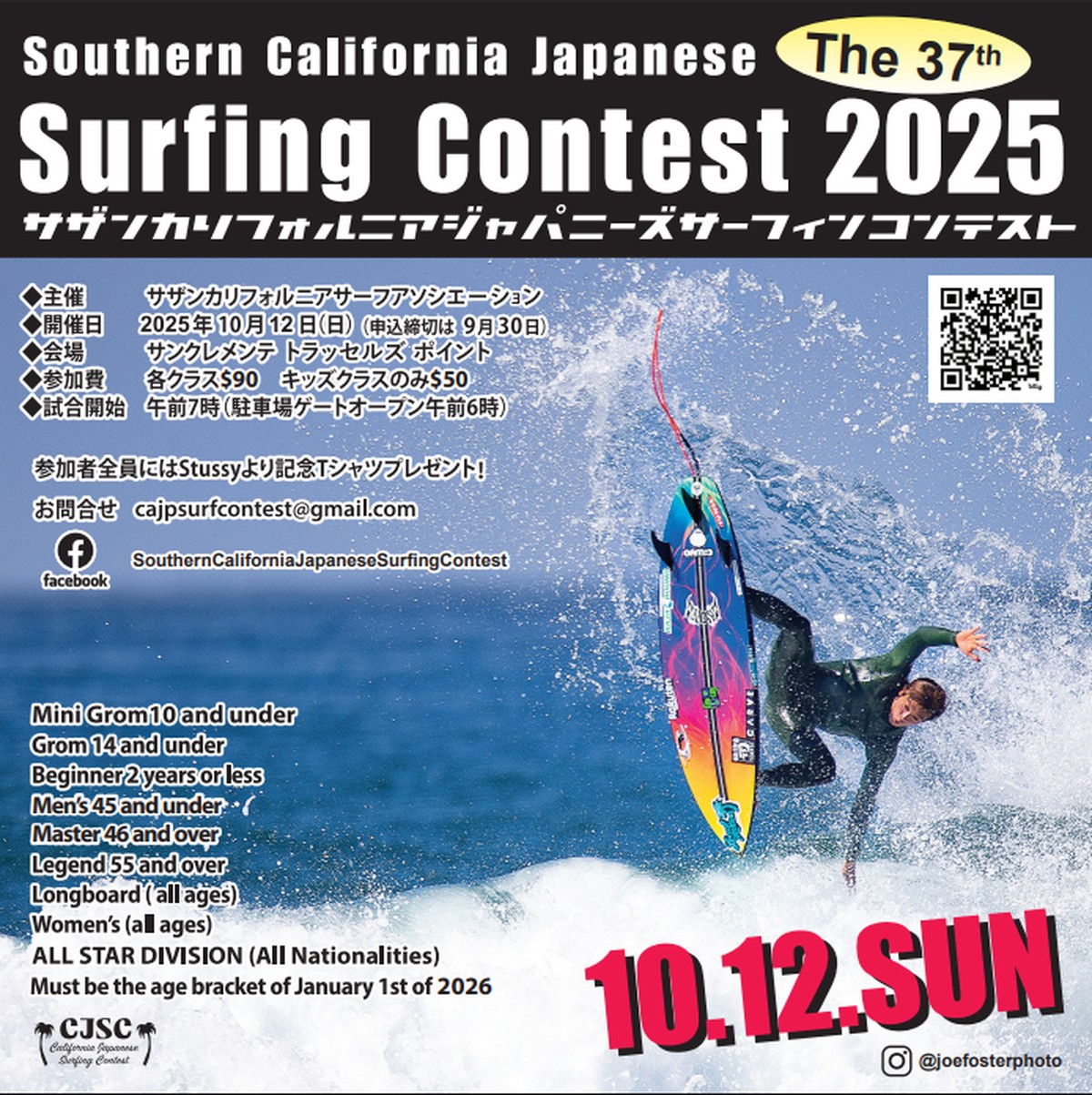 米国唯一の日本人サーフィン団体 Southern California Surf Association(SCSA) は、下記のとおりサーフィン大会を開催します。